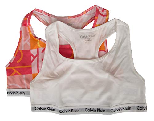 Calvin Klein Confezione 2 Bralette Bimba Bambina Ragazza CK Articolo G80G800276 2PK Bralette, 0J5 CK Pattern Unique/White, Taglia S - Anni 8-10