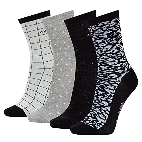 Calvin Klein Confezione da 4 Calzini da Donna con Motivo Assortito Classici, Nero, Taglia Unica