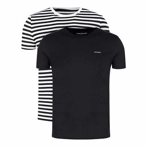 Calvin Klein Jeans Confezione da 2 t-Shirt Slim Camicia, Black Beauty/White Black Stripe, S Uomo