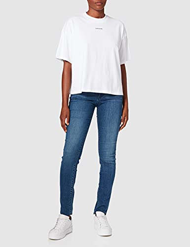 Calvin Klein Jeans Maglietta Larga Micro Branding T-Shirt, Bright White, XS Donna