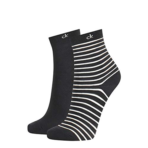 Calvin Klein Sheer Stripe-Calze da Donna (Confezione da 2) Socks, Nero, Taglia Unica