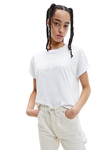 Calvin Klein T-Shirt in Cotone Biologico con Logo Lucido (Bianco, L)