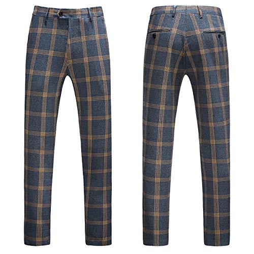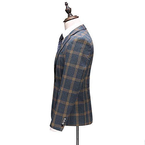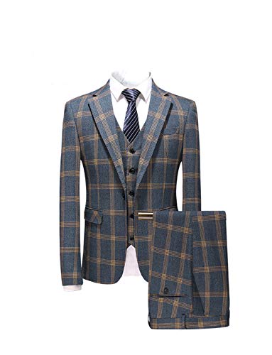 CALVINSUIT Uomo Giacca da Uomo Slim Fit a Quadri Scozzesi Tux Vest & Pants Smoking a 3 Pezzi con Risvolto in Tinta Unita