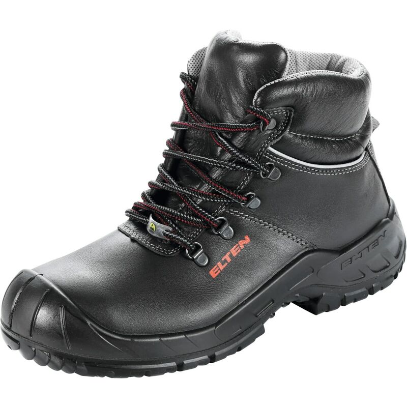 Scarpa di sicurezza LAURENZO ESD della serie ELTEN Safety-Grip. * Tomaia in robusto cuoio. * Fodera in tessuto traspirante. * Linguetta chiusa e imbottita. * Soletta plantare ESD PRO black. * Suola esterna SAFETY-GRIP a profilo alto in PU/PU. * Spunterbo in PU per proteggere la tomaia. * Caratteristiche ESD. Norma: EN ISO 20345:2011 S3 SRC Einlagenversorgung baumustergeprüft nach DGUV Regel 191. Nota: Già disponibili nelle misure UE 39 - 46, disponibili su ordinazione nelle misure UE 36 - 50. Dati tecnici Proprietà elettrostatiche EGB/ESD Tipo di prodotto Stivali di sicurezza Serie LAURENZO Genere da uomo Norma Fornitura di inserti omologati a norma DGUV 191 Colore nero Materiale fodera interna Tessuto Grado di protezione S3 Resistenza antiperforazione Tessuto Numero di scarpa UE 42 Tomaia Cuoio Materiale puntale protettivo Acciaio Materiale suola esterna Poliuretano