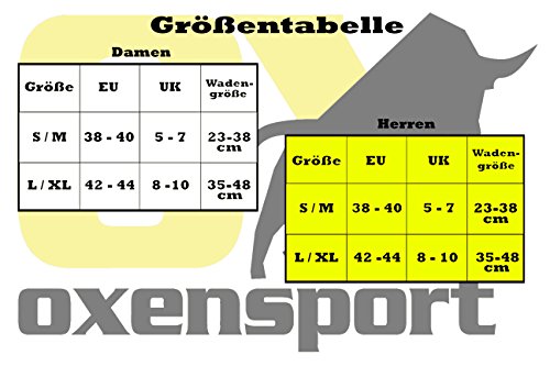Possibilità di utilizzo:Le calze a compressione di Oxensport, grazie alla pressione di compressione di 20 - 30 mmHg, sono ideali per attività sportive come corsa, ciclismo, escursionismo e per essere indossate nella vita (professionale) di tutti i giorni (infermiere, medici, impiegato, lunghi viaggi in aereo e auto).