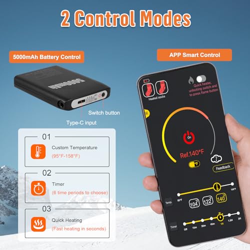 Calze Riscaldanti,Calze Riscaldanti Ricaricabili con Controllo Tramite App, 5000mAh Calze Riscaldate a Batteria per Riscaldare i Piedi con 3 Impostazioni di RIscaldamento, Timer (nero)