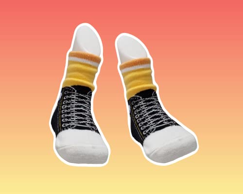Caratteristiche intelligenti e unico calze a righe multicolore con laccio e disegni. Suola antiscivolo.