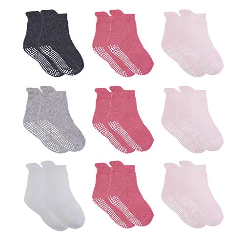 【Impugnature antiscivolo】 Le pinze antiscivolo di ampia superficie coprono dalla punta al tallone per sostenere il tuo bambino indaffarato a cui piace correre, andare in giro e saltare in casa. Ottimo anche per i bambini che imparano a camminare o gattonare. Queste forti prese impediscono loro di scivolare