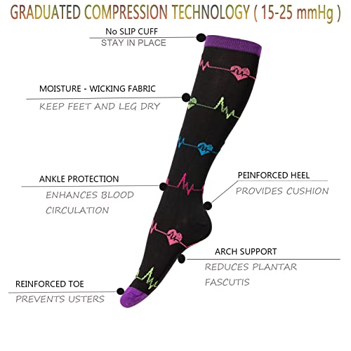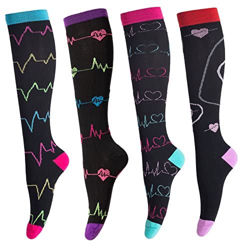 Calzini a compressione per donne e uomini circolatori medici 15-25 mmHg, ideali per infermieri, giovani, allattamento, corsa, viaggi (4 paia), Polilina., Small/Medium