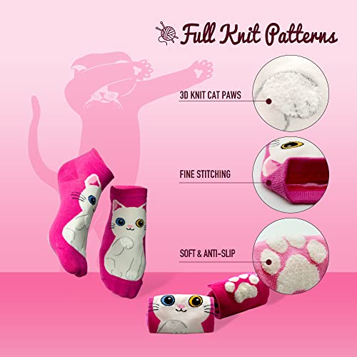 Calzini per gatti per gli amanti dei gatti, calzini sportivi da donna in cotone con simpatici motivi a gattino, confezione regalo per compleanno, Pleasure Premium Rosa