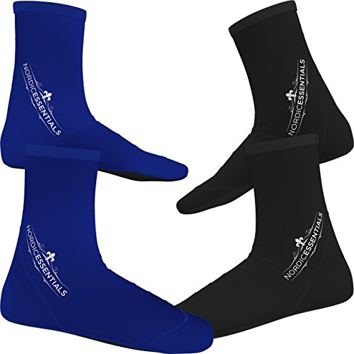 Calzini da spiaggia (2 paia) da indossare nella sabbia per giocare a pallavolo e calcio o come scarpine per immersioni, snorkeling e sport acquatici - bambini, uomini e donne - da Nordic Essentials ™, Black + Blue