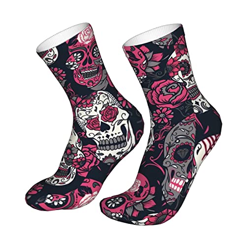 Calzini sportivi da uomo e donna, con stampa 3D, motivo teschio messicano, con motivo a forma di teschio di zucchero e fiore, 30 cm, per corsa, fitness, uso quotidiano