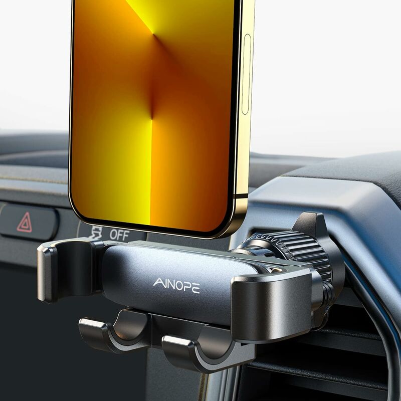 AUTOBLOCCANTE, NIENTE PIÙ CADUTE: questo supporto per telefono per auto a gravità presenta in modo creativo fessure per il braccio autobloccanti che si regolano automaticamente per tenere meglio il telefono senza preoccuparsi degli urti. Grazie all'ingegnoso sistema di rimbalzo automatico della gravità, non è necessario effettuare alcuna regolazione secondaria. il silicone elastico e il cuscino inferiore possono coprire completamente l'interfaccia tra il telefono e il supporto del telefono dell'auto, proteggendo il telefono da urti e graffi. Può simultaneamente risolvere efficacemente problemi tipici come urti e collisioni, assicurando che il tuo dispositivo non scivoli durante la guida. ? L'operazione più semplice, mani libere: basta far scorrere il telefono, il supporto per telefono per auto con presa d'aria schiaccia automaticamente il telefono per gravità e fornisce il funzionamento più semplice e una presa stabile e solida senza alcun pulsante da premere. Rispetto al vecchio