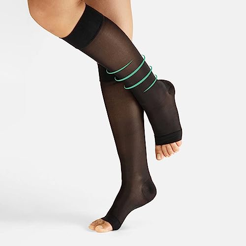 CALZITALY PACK 1/2 Gambaletti Elastici Compressione Graduata Forte a Punta Aperta, 140 DEN, 18-22 mm/Hg | Made in Italy (2 pPack, Nero, S/M)