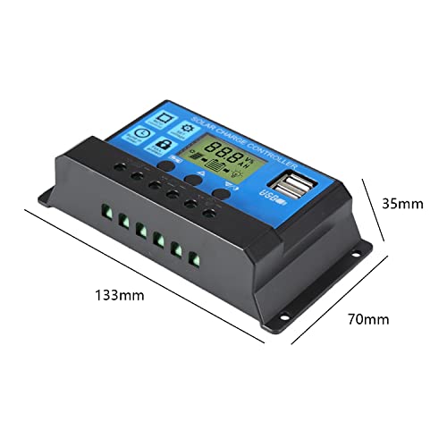 [Alta regolazione: temperatura di funzionamento: da 35 °C a 60 °C. Tensione della batteria: rilevamento automatico 12 V/24 V. Corrente di carica: 30 A. Corrente di scarica: 10 A. Tensione di uscita USB: 5 V/3 A, ricarica intelligente PWM a tre fasi, alta efficienza.