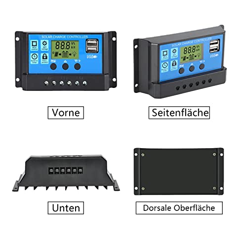 [Design perfetto]: il regolatore di carica solare dispone di un ampio display LCD con stato e dati chiari e completa gestione della carica PWM a tre livelli. Adotta chip master con qualità industriale, materiali di alta qualità, protezione ambientale e alta efficienza.