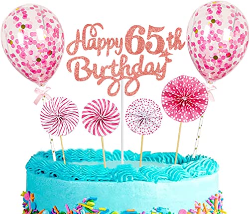 CAM2 Happy Birthday, decorazione per torta di compleanno, ragazza, decorazione per torta 1-30 TH, decorazione per torta Happy 1-30th Birthday, rosa, oro, decorazione per torte glitterate e palloncini