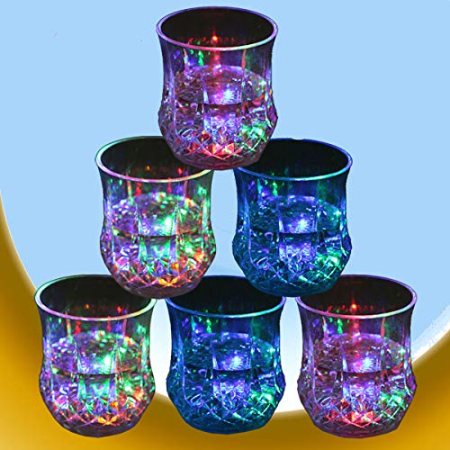 Cambiamento Cromatico Bicchieri con 5 LED Luci, Acrilico Plexiglass Non Fragile Impermeabile Marble Texture Materiale, Bicchieri a LED Multicolore per Feste e Eventi(2pc)