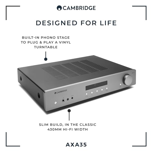 Cambridge Audio AXA35 - Sistema HiFi con amplificatore stereo integrato separato da 35 Watt e preamplificatore con stadio fono incorporato, ingresso Aux frontale e presa per cuffie - Grigio Lunare