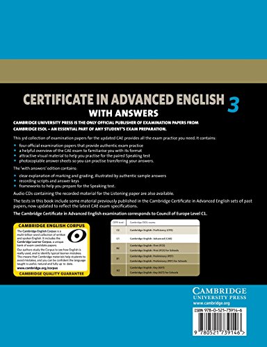 Cambridge Certificate in Advanced English 3 for Updated Exam Student's Book with answers: Examination Papers from University of Cambridge ESOL Examinations