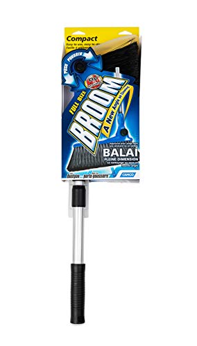 La scopa telescopica, lunga 132 cm in posizione estesa, si riduce a 61 cm quando è chiusa