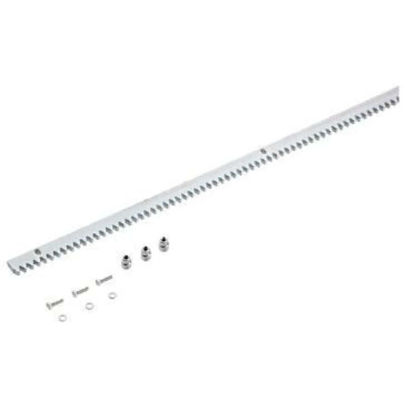 Cremagliera per cancelli scorrevoli Materiale: Acciaio Passo: 4 Lunghezza: 1Mt Distanziali e perni 30x12mm Distanziali e perni inclusi