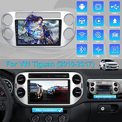 【Autoradio Android 11 Double Din】Compatibile con Volkswagen Tiguan (2010, 2011, 2012, 2013, 2014, 2015, 2016 e 2017). La radio viene fornita con un telaio di montaggio argento, borsa di montaggio e canbus. Si prega di controllare la taglia e l'anno del modello corrispondente prima dell'acquisto, oppure contattarci per aiutarti a verificare la compatibilità.
