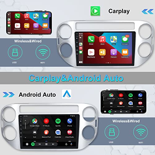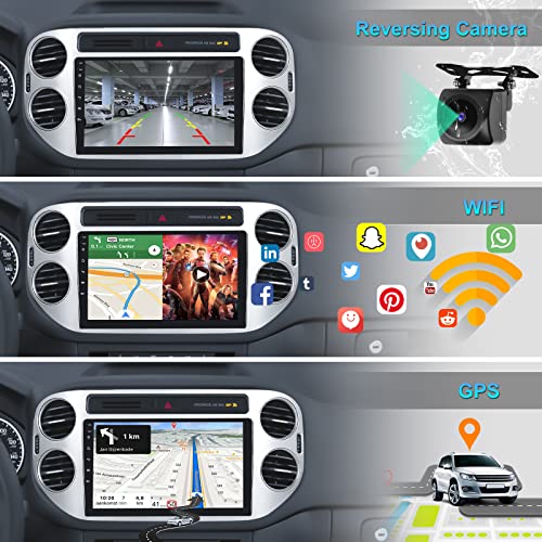Camecho 2022 Autoradio Android per VW Tiguan (2010-2017), Autoradio Android Auto 9 pollici Autoradio Touch Screen Wireless Carplay, Autoradio Bleutooth Vivavoce/Navi/WiFi/FM+ Fotocamera + Microfono