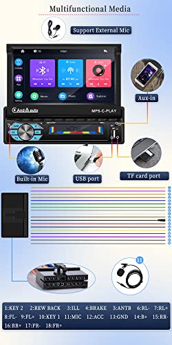 CAMECHO Autoradio 1 Din Bluetooth Carplay Android Auto 7 Pollici Touch Screen Stereo Auto con FM Radio Controllo Volante,Supporta USB/AUX/TF/DVR + Telecamera Posteriore