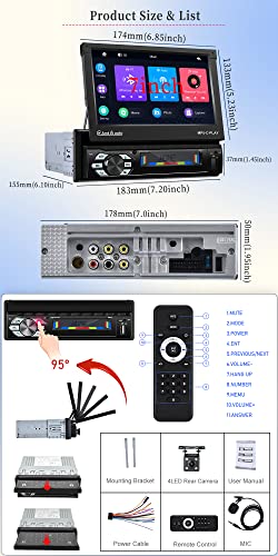 Autoradio 1 DIN: schermo full touch screen da 7 pollici 2,5D, dimensioni del display 181 x 102 mm, dimensioni di installazione: 178 x 100 x 45 mm. Dispone di funzione di equalizzazione e di un'uscita subwoofer e può essere collegata a un microfono esterno. Telecamera di parcheggio impermeabile con visione notturna, i pixel AHD sono più chiari.