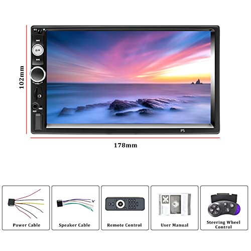 Dimensione articolo 178 * 102 * 64 mm, doppio din car radio progettato. Touch Screen da 7 pollici. Doppia USB (una anteriore + una posteriore), con porta di ingresso scheda AUX / SD / TF. Supporto ingresso / uscita audio / video. supporta l'uscita audio del subwoofer