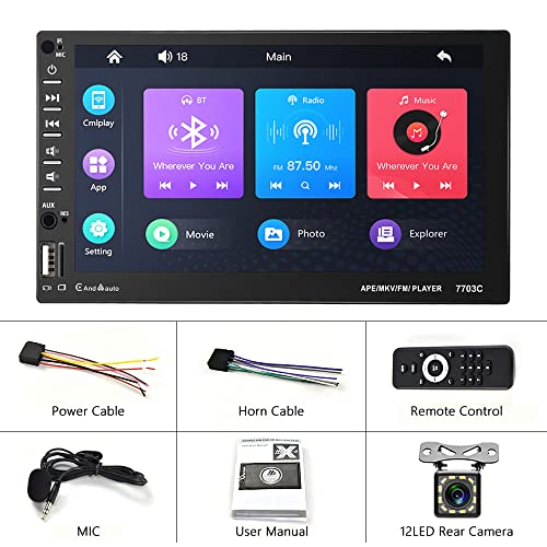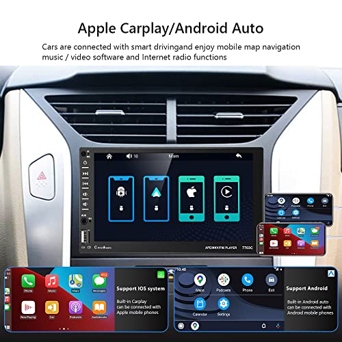 Camecho 2 DIN Autoradio Carplay/Android Auto, 7 pollici Bluetooth Autoradio con Mirror Link/FM/USB/AUX/TF Card/SWC MP5 Player per Auto + Fotocamera Posteriore + Microfono Esterno
