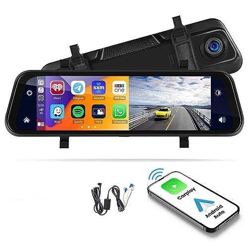 【Camma da cruscotto a specchio Apple CarPlay Android Auto senza fili】 Questa telecamera da cruscotto è aggiornata con Apple Carplay/Android Auto wireless. Collegare il Bluetooth con il telefono per controllare la voce e accedere alla navigazione su mappa, messaggi, e-mail, telefonate, musica, compatibile con Google o Siri Assistant, è possibile concentrarsi sulla strada, tenere le mani libere e guidare in piena sicurezza!