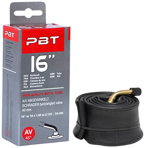 PBT Camera d'aria da 16 pollici AV ad angolo per bicicletta per bambini - valvola angolare per bicicletta da 16" o 16 x 1.95 fino a 2.125 - Edition 2021