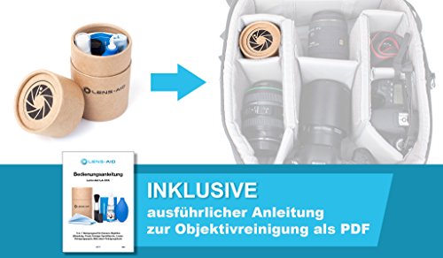 pratica scatola portaoggetti: niente sacchetto di plastica ma una forma robusta e maneggevole Box in obiettivo. Si adatta a qualsiasi borsa per fotocamera e tutti gli utensili di pulizia sono sempre a portata di mano e si incastrano rapido riposte. Anche divertente come regalo da weihachten o compleanno, tramite il fotografo si tutti piacere. Il kit di pulizia per obiettivi/filtro/filtro polarizzatore e UV ottimale anche proiettore/binocoli. Con tutti gli strumenti necessari per una pulizia ottimale.