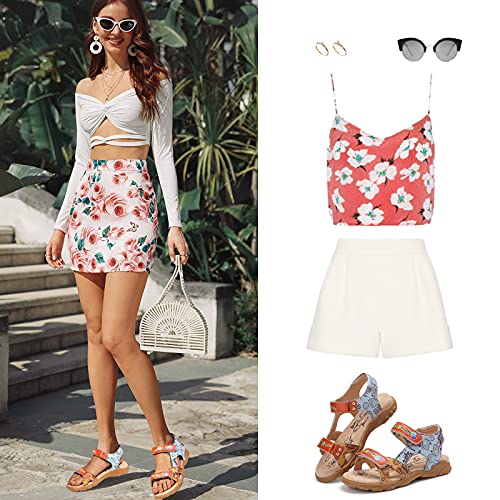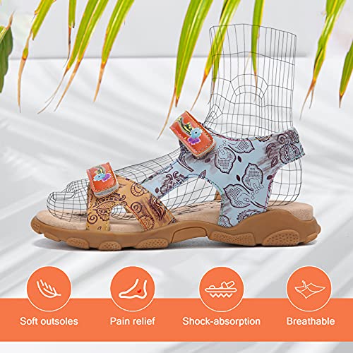 Camfosy Sandali in pelle da donna,Scarpe da trekking estive Scarpe piatte in pelle piatte Comfort Open Toe Original per piedi larghi Walking