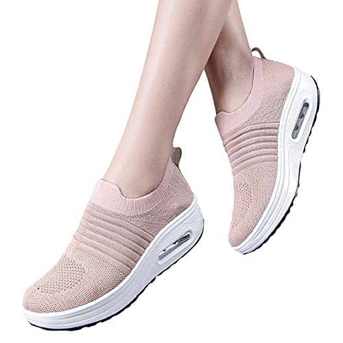 205 Camice da Cucina Sneaker per Le Donne Mesh Scarpe da Corsa Piattaforma Breathable Sneakers Fashion Sport Shoes Air Cuscino Wedge Shakers Cuffie Cuoco (Pink, 38)