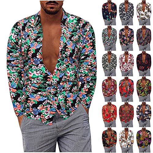 Camicetta Top Camicie T-Shirt Uomo Moda Casual Taglie Forti Camicia a Maniche Lunghe in Lino con Risvolto (XL,5multicolore)