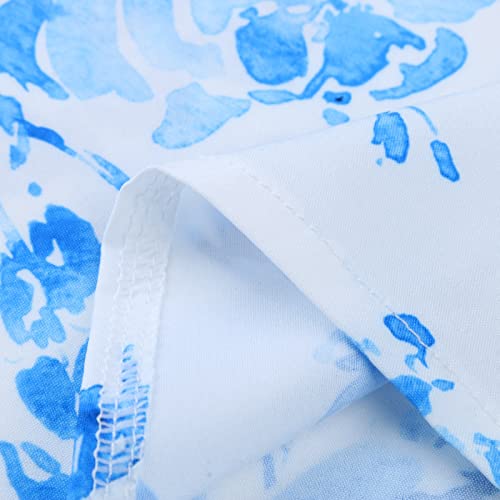 Camicetta da donna elegante con stampa floreale, scollo a V, maniche lunghe, casual, a maniche lunghe, con scollo a V, casual, con stampa floreale, Zx01#blu, S