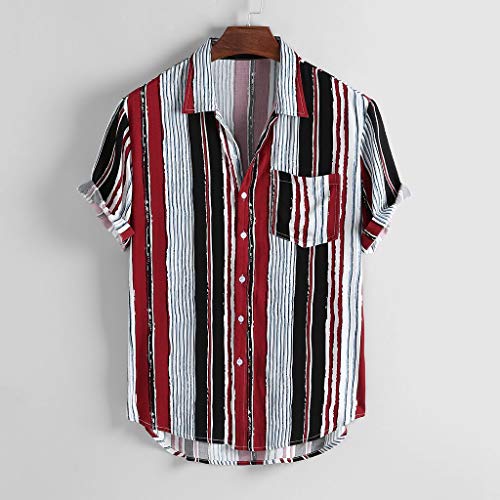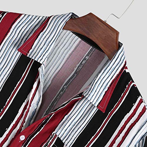 Camicetta variopinta bottoni allentati camicia a righe casual corta estate manica da uomo camicia da uomo camicia da uomo camicia da uomo manica lunga, Rosso, L