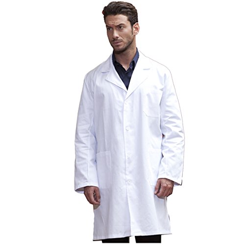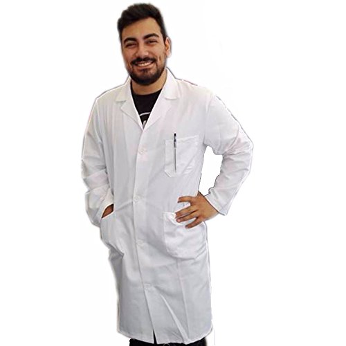 Camici Da LABORATORIO per Lavoro Uomo Bianchi Di Cotone Pesante Piquet Per Scuola Chimica Dottore Sanitario (48, bianco)