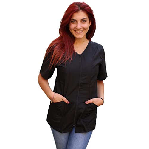 Camici da Lavoro Donna con Zip,Casacca,a Scelta tra 4 Colori, Estetista,parrucchiera, MAESTRA Asilo,Alimentari (L, Nero)
