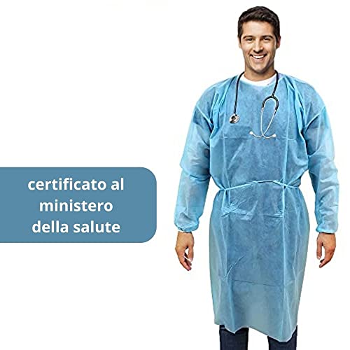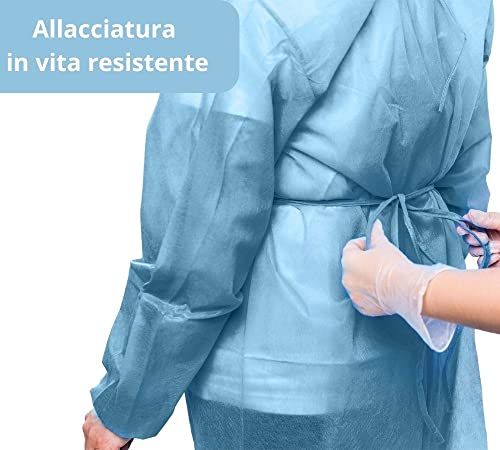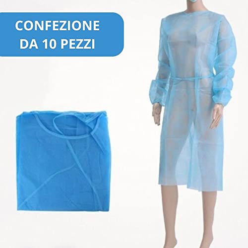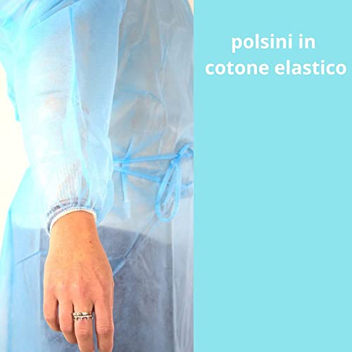 Camici TNT Monouso Idrorepellenti 10 Pezzi Certificato Dispositivo Medico Traspiranti Polsini Elasticizzati Colore Azzurro Taglia Unica Peso 20GR Uso Ospedaliero Senza Lattice Chiusure Facilitate