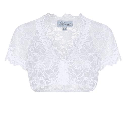 Camicia Dirndl in pizzo, a maniche corte, colore bianco, elegante ed esclusiva, da donna, parzialmente trasparente, bianco, 50