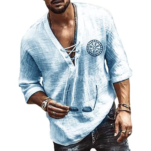 Camicia Etnica alla Moda da Uomo Camicia in Lino di Cotone Manica Lunga Allentata Colletto Basso Stampa Beach Yoga Top