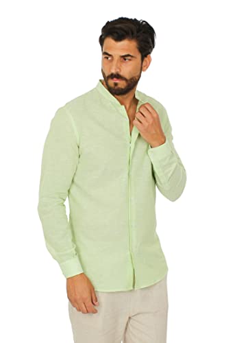 Camicia Lino Uomo Coreana Slim Fit Made in Italy (S, Verde)