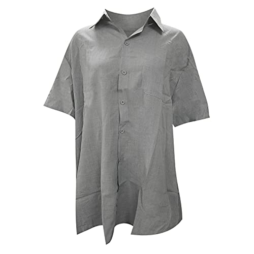Camicia a maniche corte in lino, da uomo, a maniche corte, effetto lino, per il tempo libero, da lavoro, leggera, slim fit, da uomo, vestibilità normale, estiva, alla moda, grigio., XL