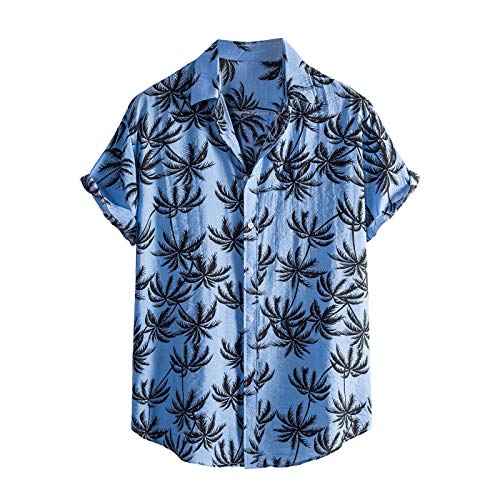 Top Camicia A Maniche Corte Stampata in Cotone E Lino da Uomo Camicie Uomo Eleganti Uomini Camicie Hawaiana Manica Corta T-Shirt Collo Classico Slim-Fit A Manica Spiaggia Mare