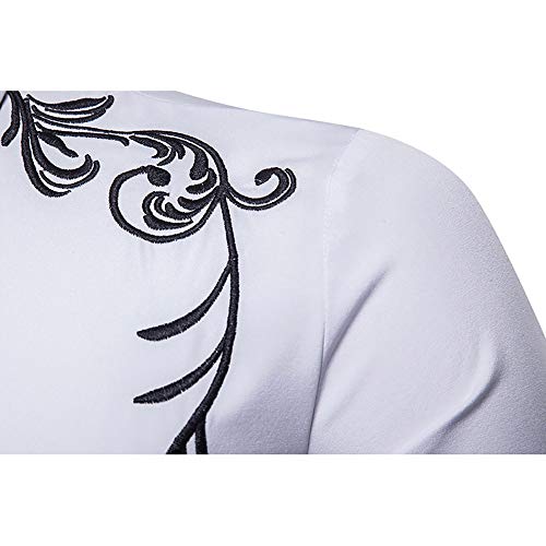 Camicia A Maniche Lunghe Ricamo Uomo Camicia Casual vestibilità Alta vestibilità Western Cowboy (Color: White, Size: M)