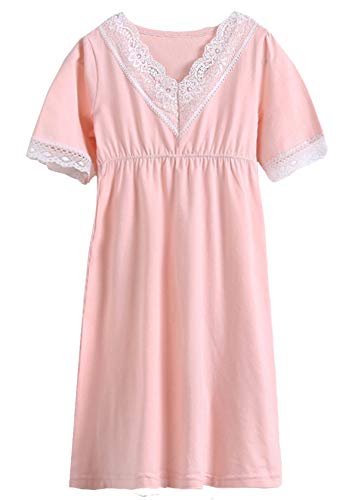 Camicia da notte in cotone, abito in pizzo, abito estivo, biancheria da notte, a maniche corte, abbigliamento per bambini per 3 - 12 anni Colore: rosa. 110 cm/3-4 anni